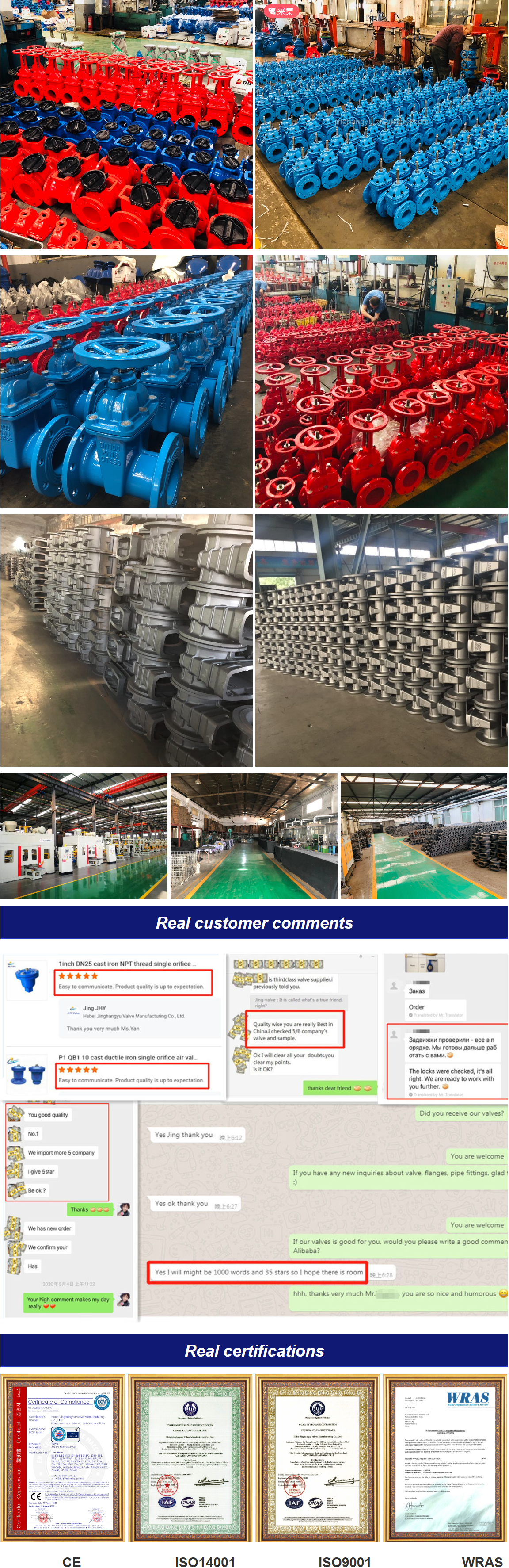 A: Three factories under Jhy company: foundry factory, valve design factory, and valve manufacturing factory.